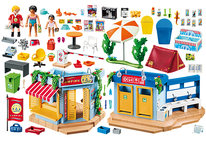 It's time to take a family camping trip and where better to go than PLAYMOBIL's new fantastic campsite. With a brand new shower block and a fully stocked kiosk, there is everything you need for the perfect trip. After the family put up their tent they go and explore the site with the handy site maps. The kids grab their buckets and spades and get ready to head to the beach, but first a quick stop at the kiosk to get their favourite ice-creams.