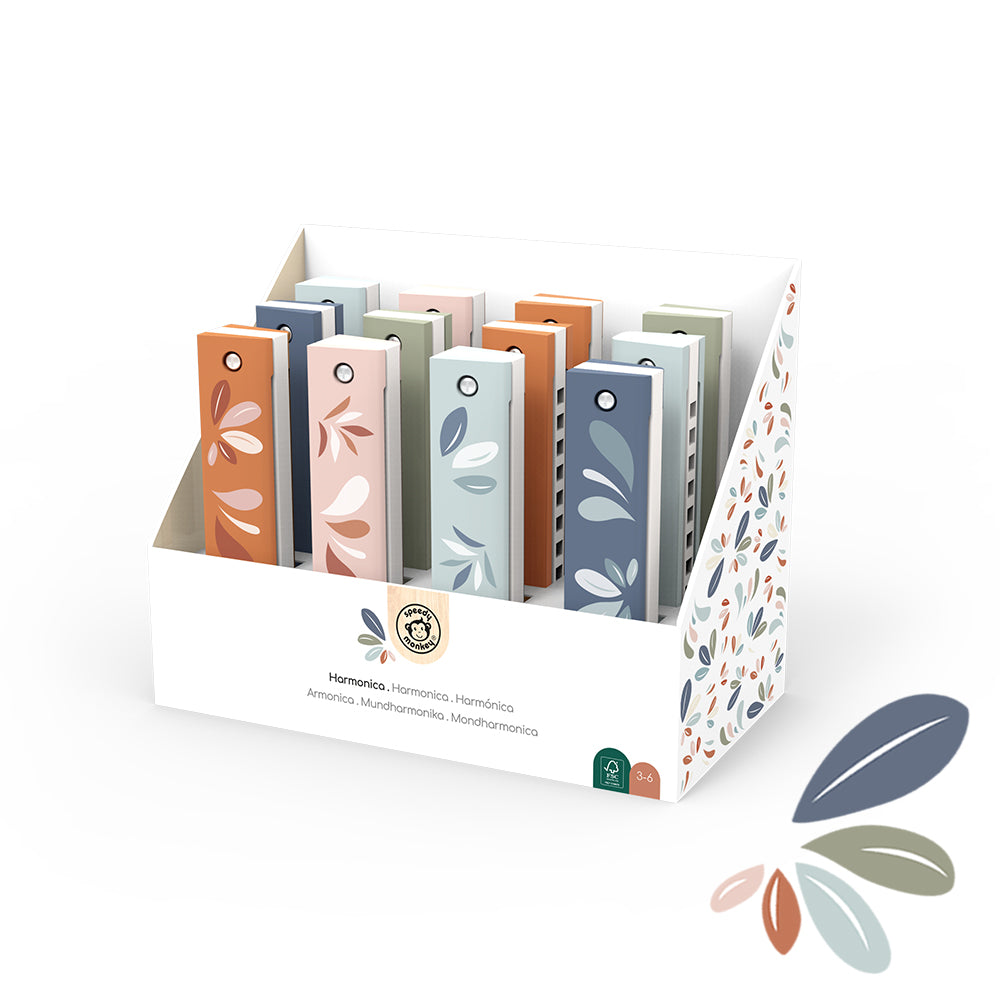 Crafted for tiny fingers and big smiles, this harmonica hits all the right notes of fun and musical exploration. From bluesy tunes to catchy melodies, it's the perfect instrument to jazz up playtime. Little ones can riff and roll with this fun instrument. This toy is crafted from sustainably sourced wood from FSC® certified forests and coated with non toxic, child-safe paint.