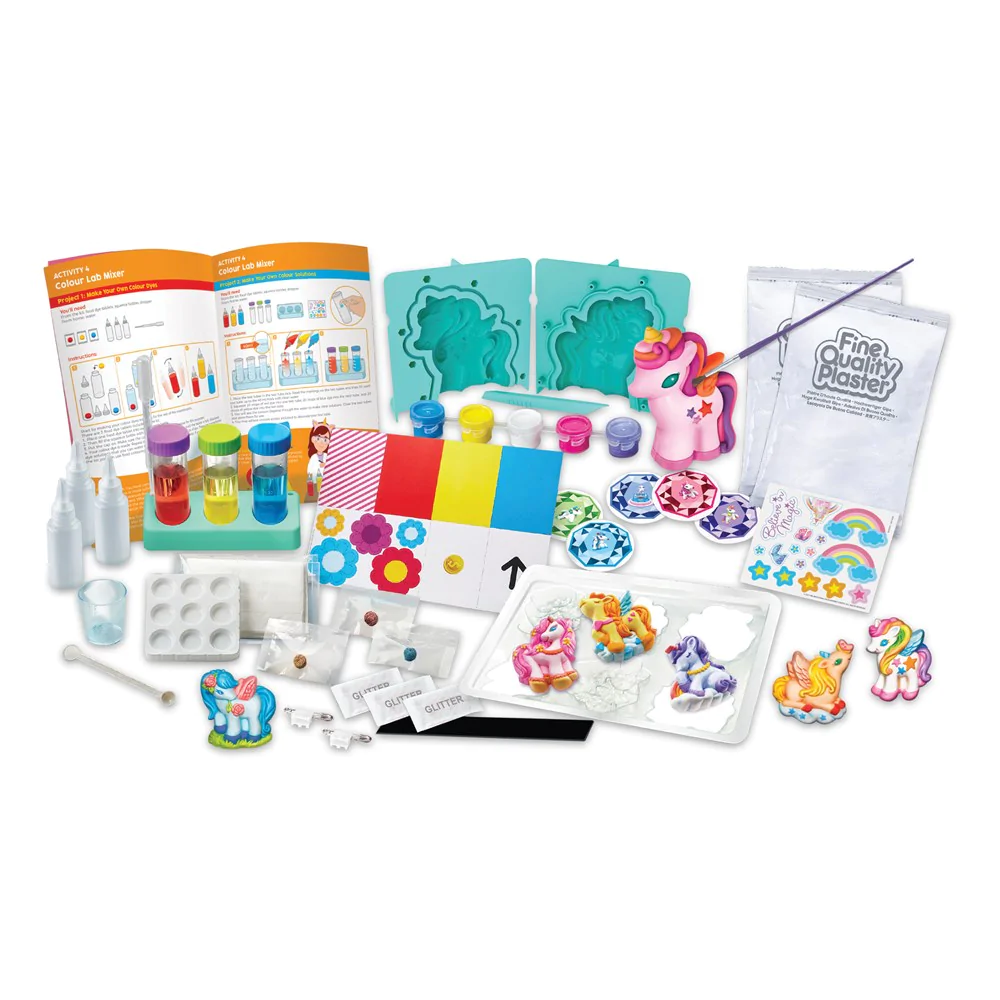 Explore the fun and excitement of science with this comprehensive Rainbow & Unicorns STEAM activities kit, combining science, technology and creativity. Over 20 hands-on projects to discover! Full of fun science and crafts - including Mould & Paint fridge magnets, 3D Mould & Paint Unicorns, a Rainbow Colour Mixer set and some fun augmented reality unicorns!